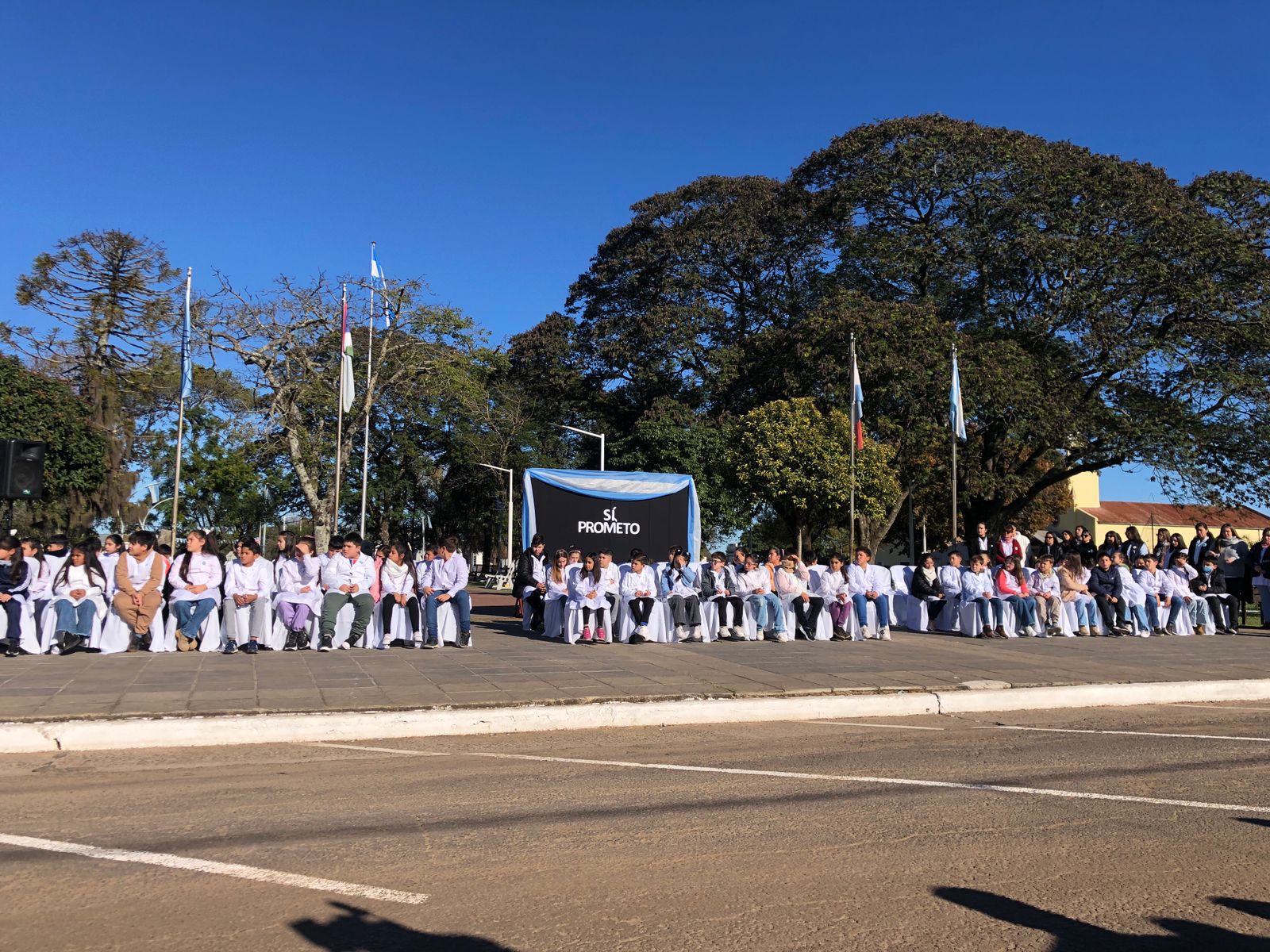 En la mañana de hoy, en la Plaza Luis María Campos, se llevó a cabo el acto oficial por el Día de la Bandera, con la emotiva participación de los alumnos y alumnas de 4.º grado, quienes realizaron su Promesa de Lealtad a la Bandera Nacional.